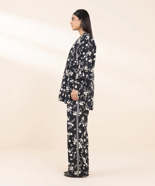 SAPPHIRE | UNSTITCHED 2 PIECE PRINTED SATIN SUIT
