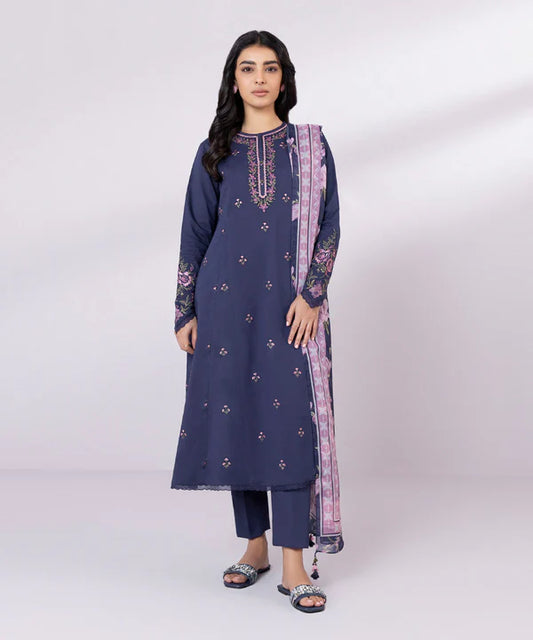 SAPPHIRE | UNSTITCHED 3 PIECE - EMBROIDERED COTTON KARANDI SUIT