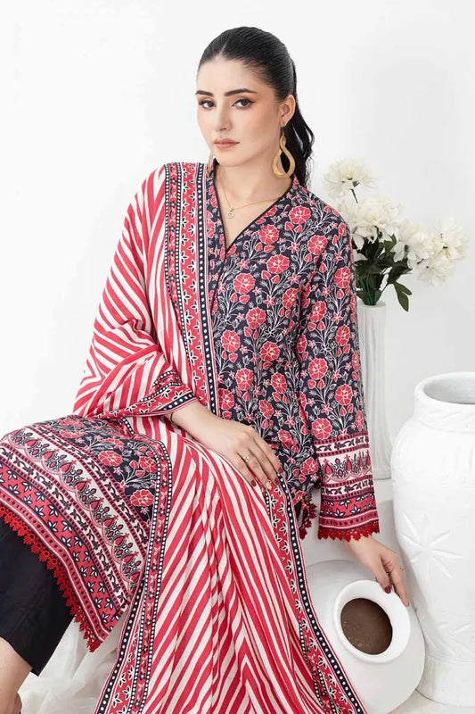 J. | UNSTITCHED 3 PIECE PRINTED LAWN SUIT