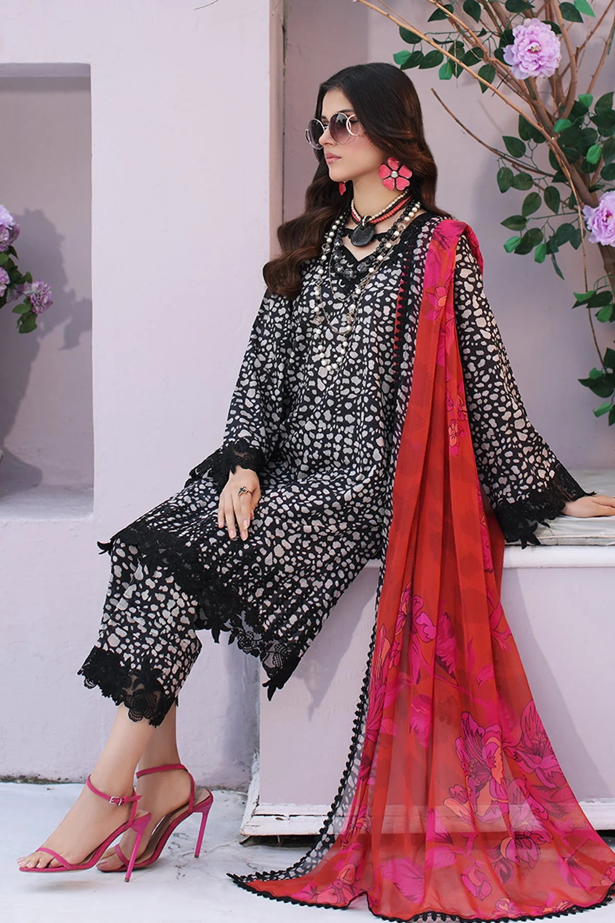 Charizma | 3-PC Unstitched Embroidered Lawn Shirt With Chiffon Dupatta And Trouser
