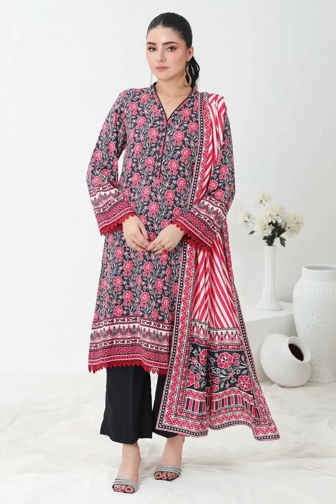 GUL AHMED | 3PC UNSTITCHED PRINTED LINEN SUIT