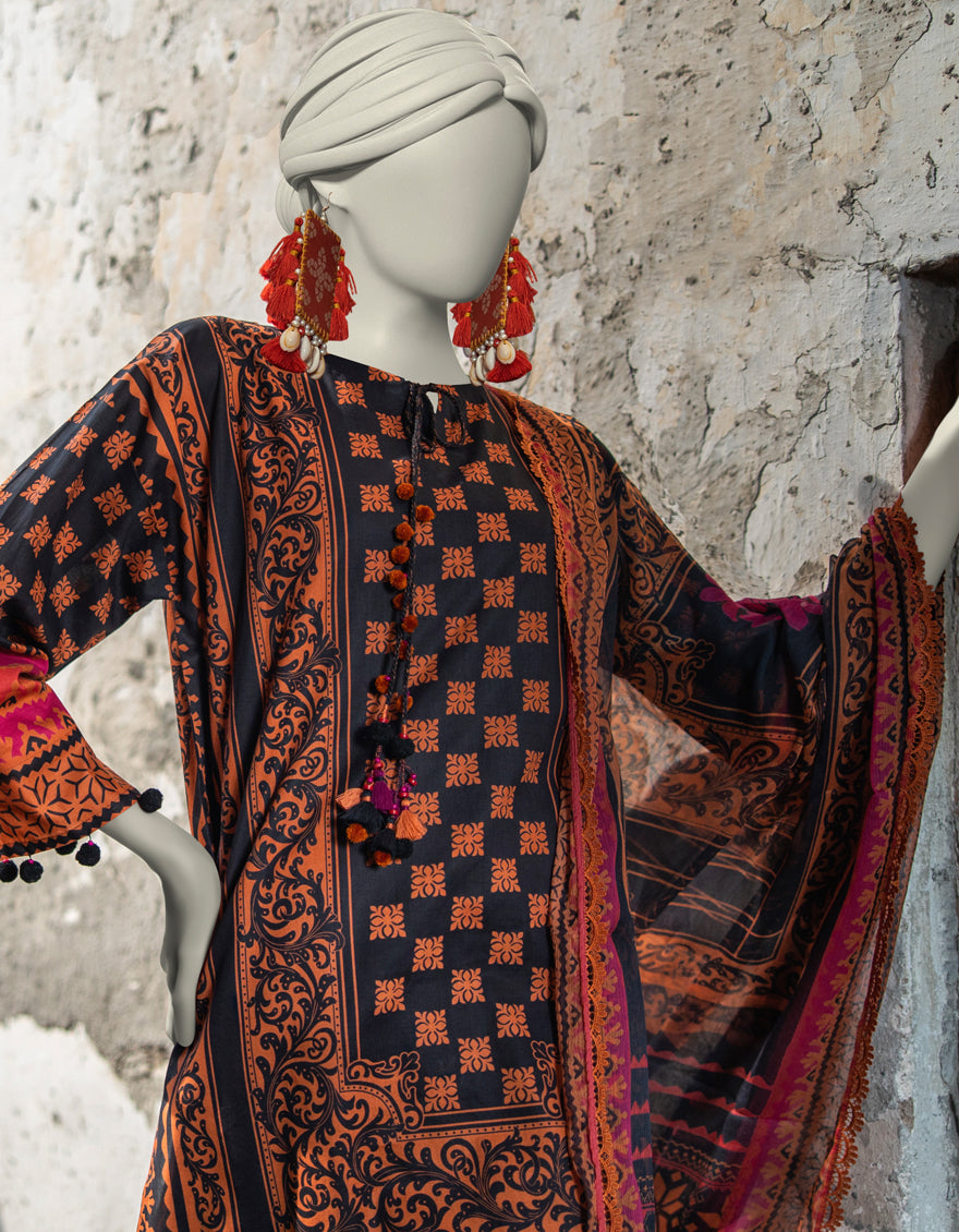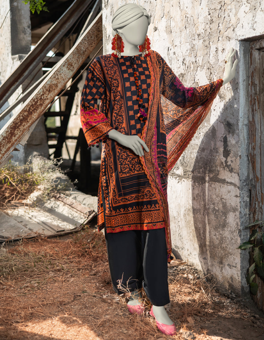 J. | UNSTITCHED 3 PIECE PRINTED LAWN SUIT