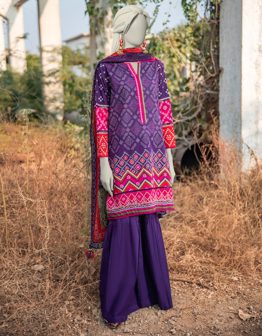 J. | UNSTITCHED 3 PIECE PRINTED LAWN SUIT