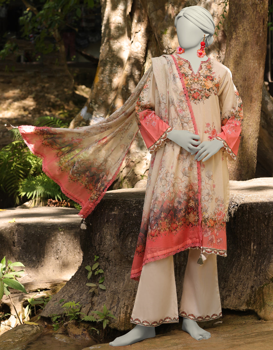 J. | UNSTITCHED 3 PIECE PRINTED LAWN SUIT