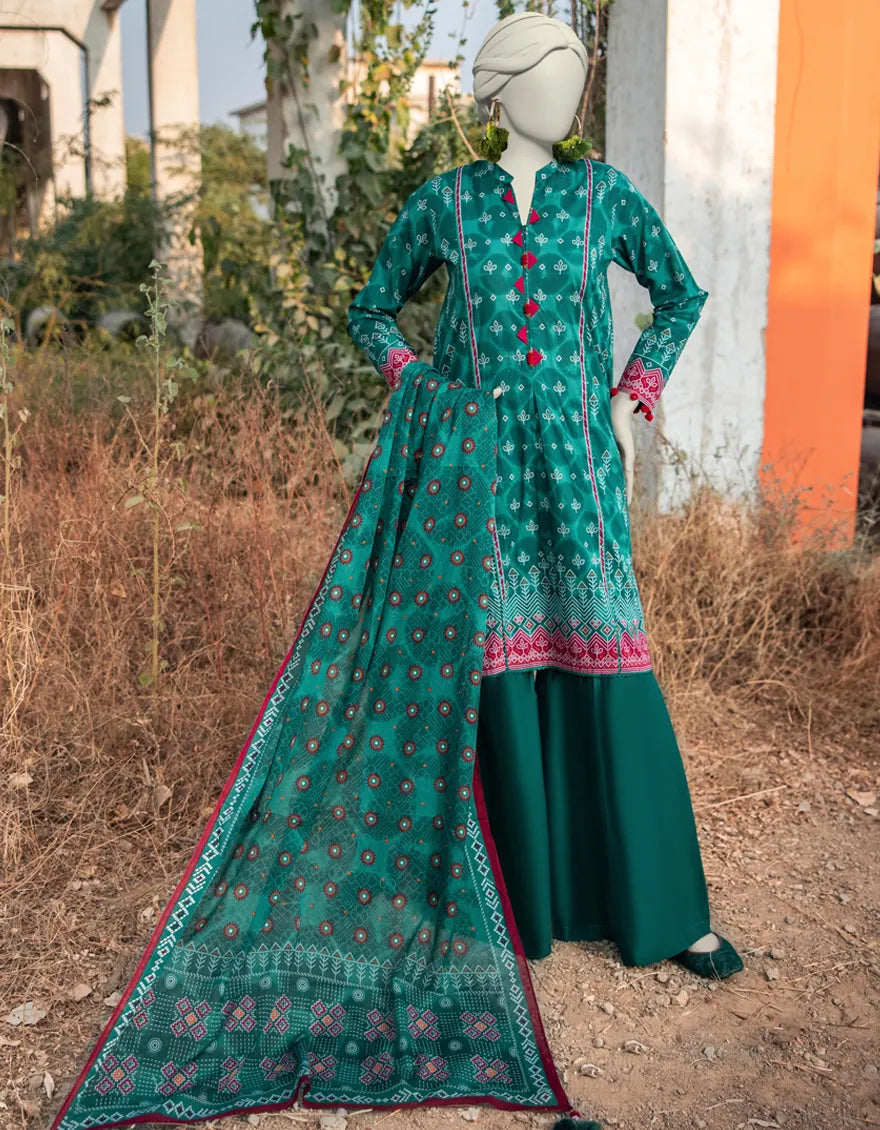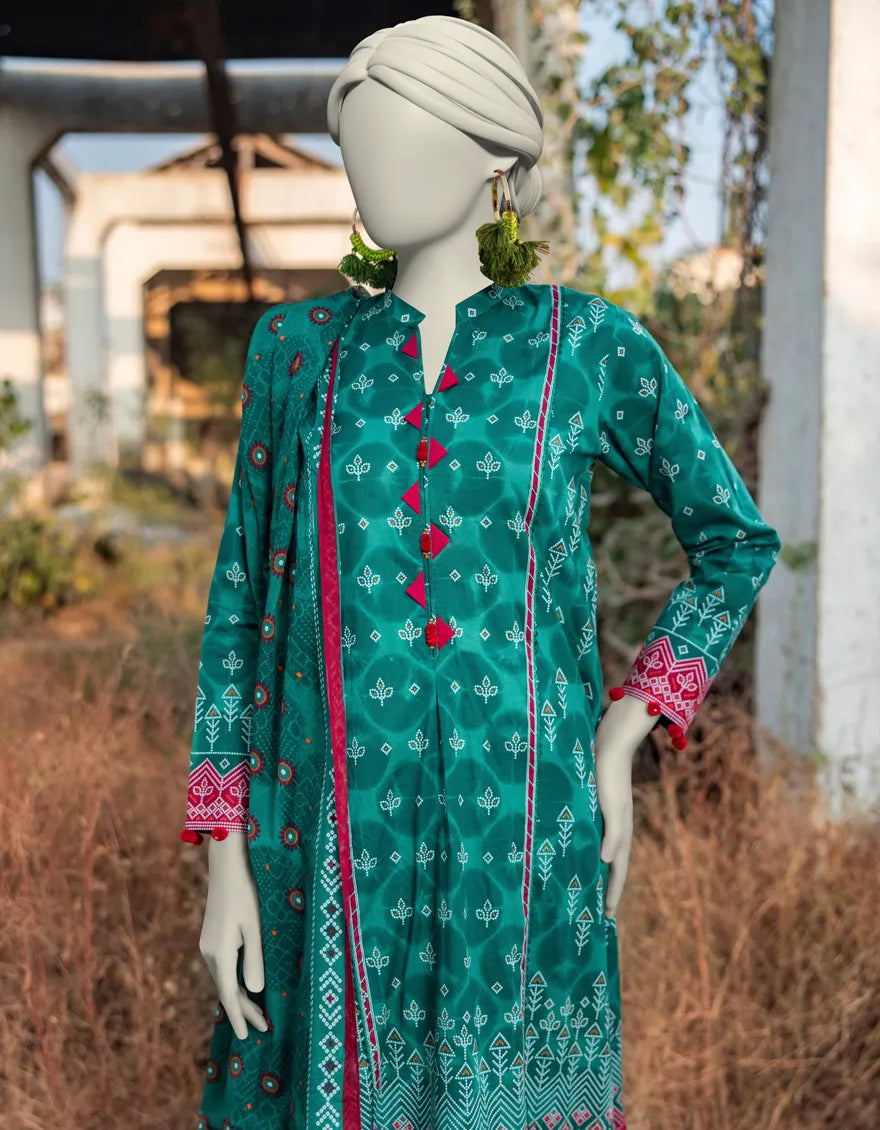 J. | UNSTITCHED 3 PIECE PRINTED LAWN SUIT