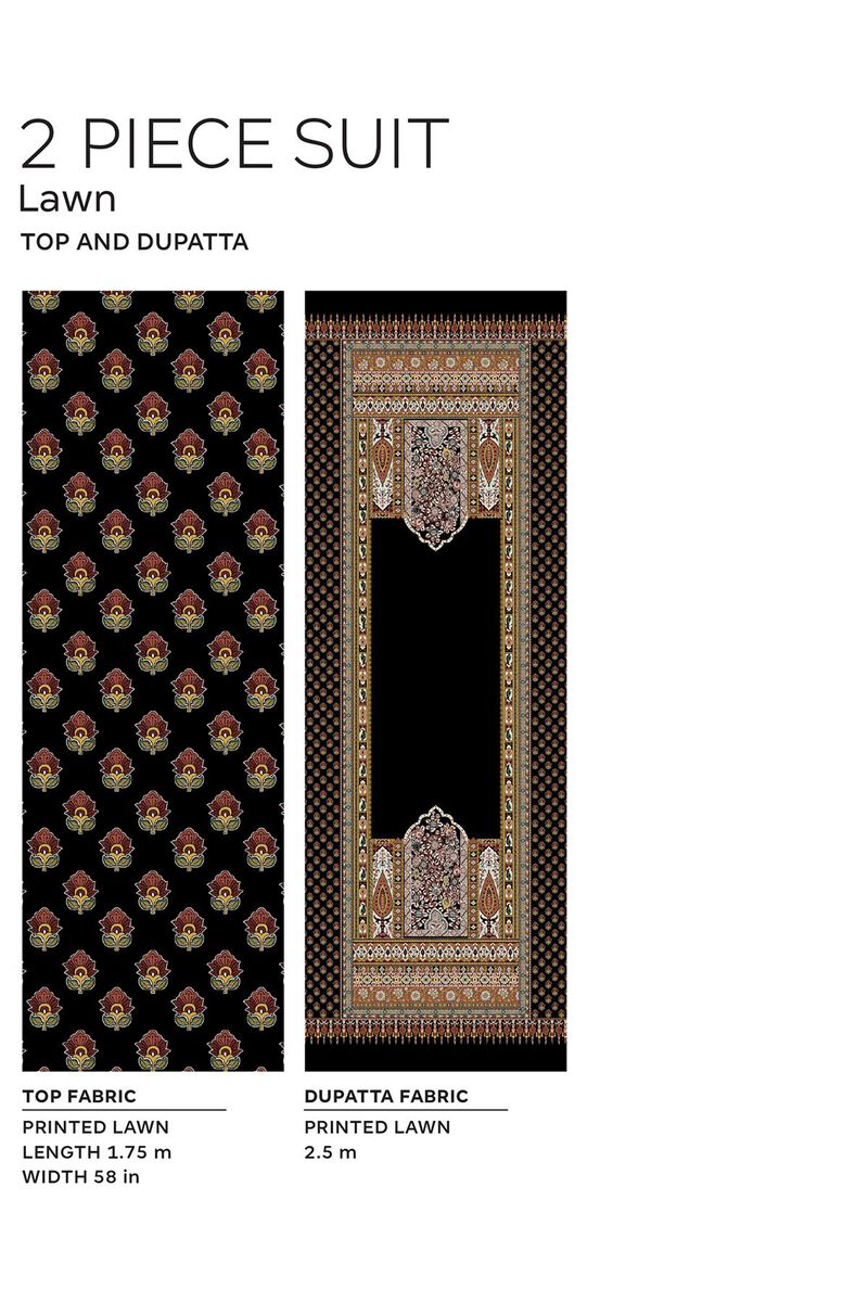 Khaadi | 2 Piece Unstitched Lawn - Top & Dupatta | LLA230906-Black