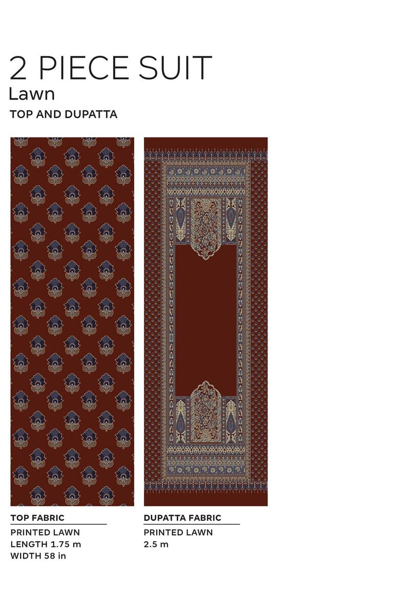 Khaadi | 2 Piece Unstitched Lawn - Top & Dupatta | LLA230906-Rust