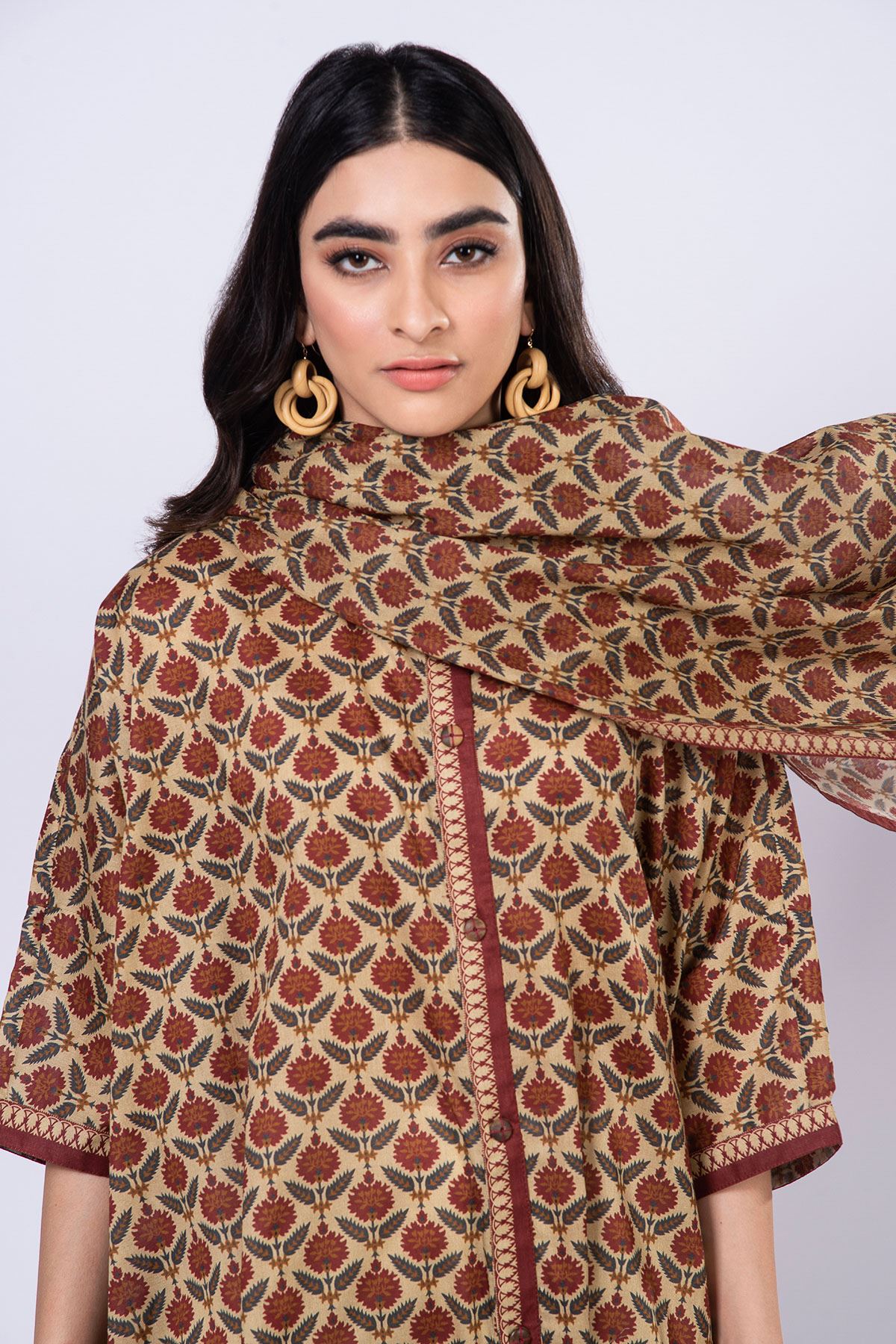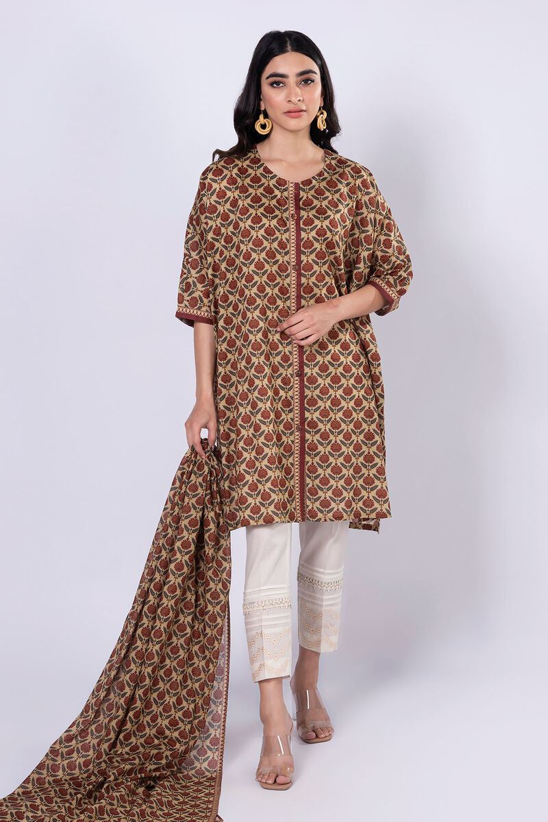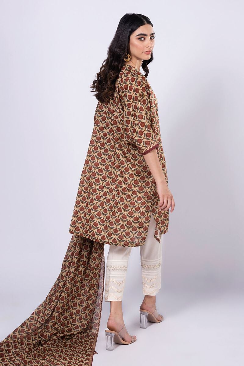 Khaadi | 2 Piece Unstitched Lawn - Top & Dupatta | LLA230518-Beige