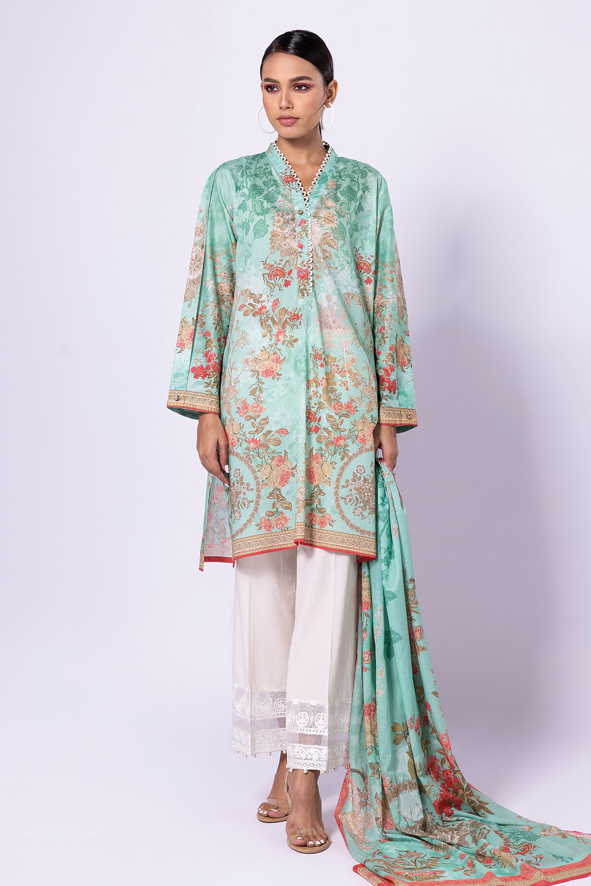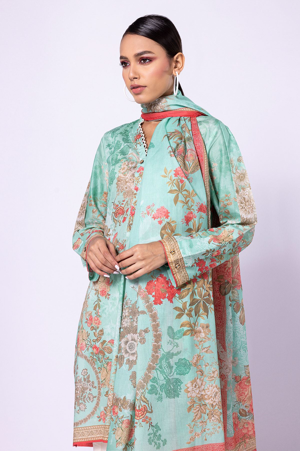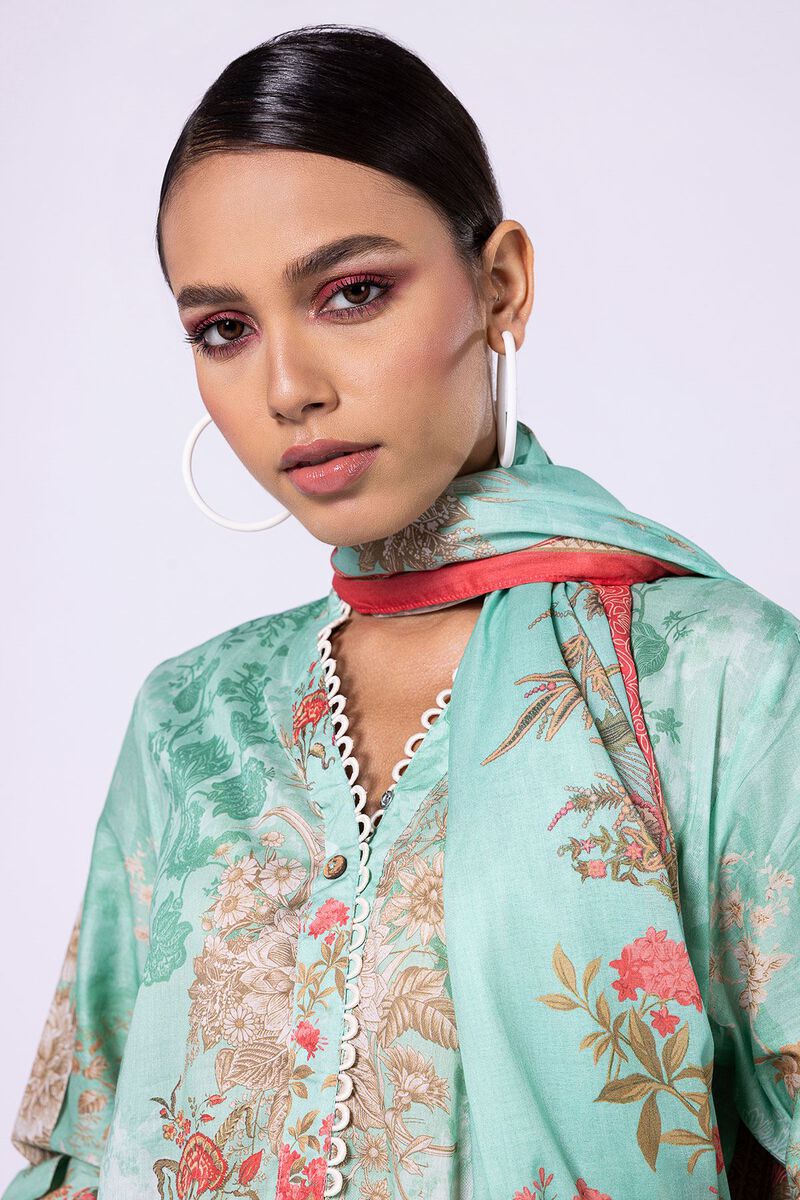 Khaadi | 2 Piece Unstitched Lawn - Top & Dupatta | LLA23133-Green