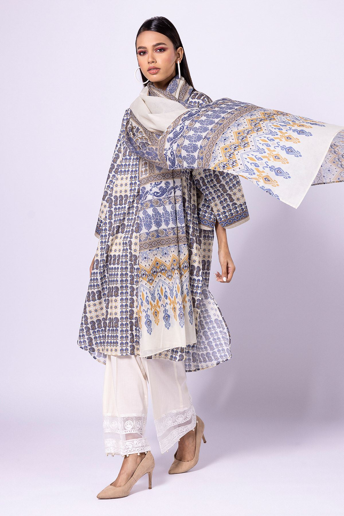 Khaadi | 2 Piece Unstitched Lawn - Top & Dupatta | LLA23137-off-White