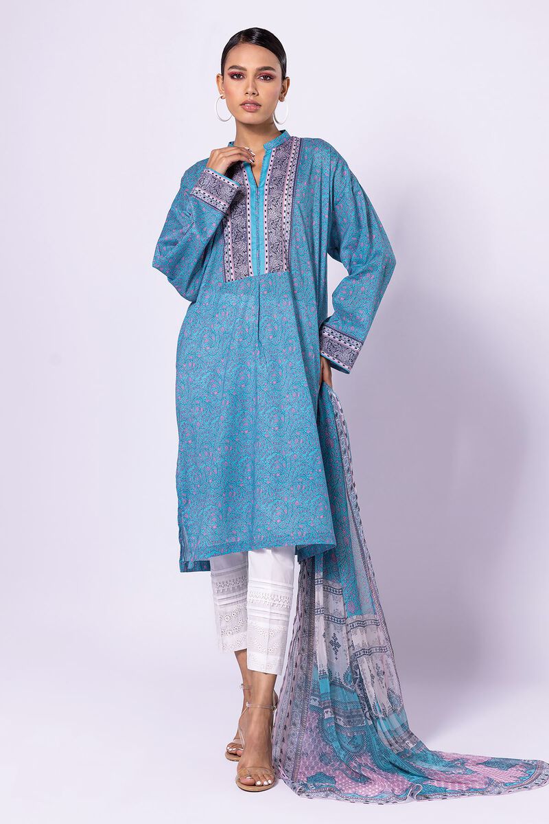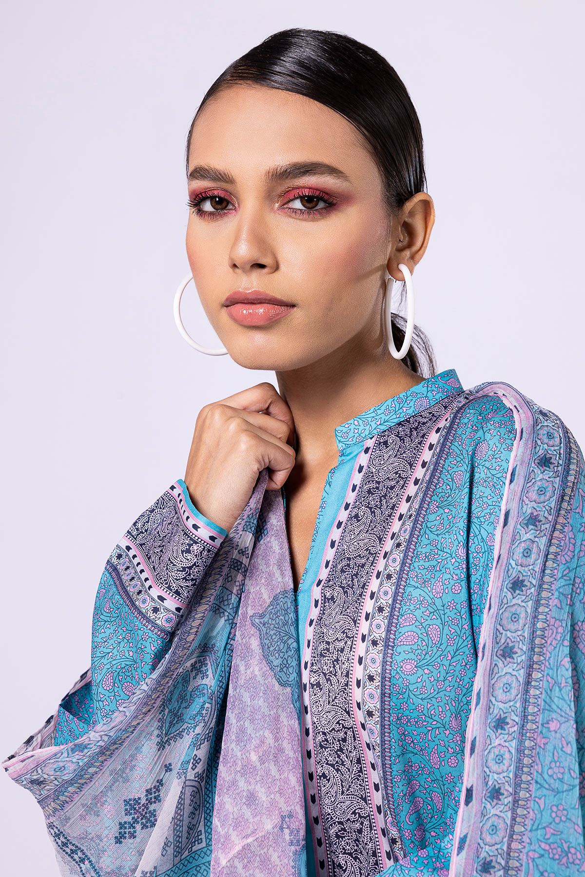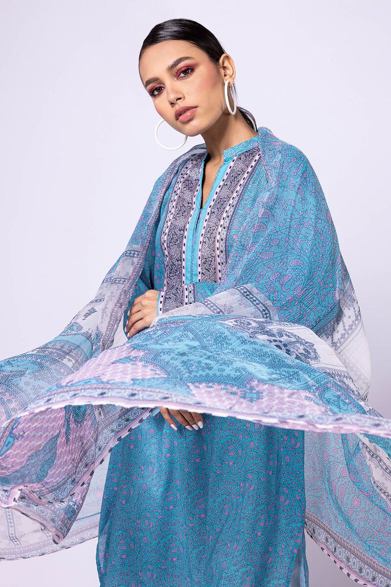 Khaadi | 2 Piece Unstitched Lawn - Top & Dupatta | LLA23140-Blue