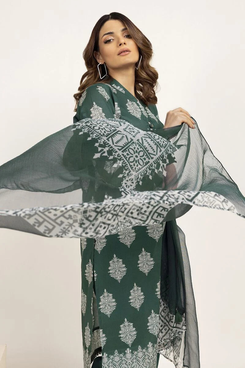 Khaadi | 3 Piece Unstitched Lawn Suit | ALA230925-GREEN
