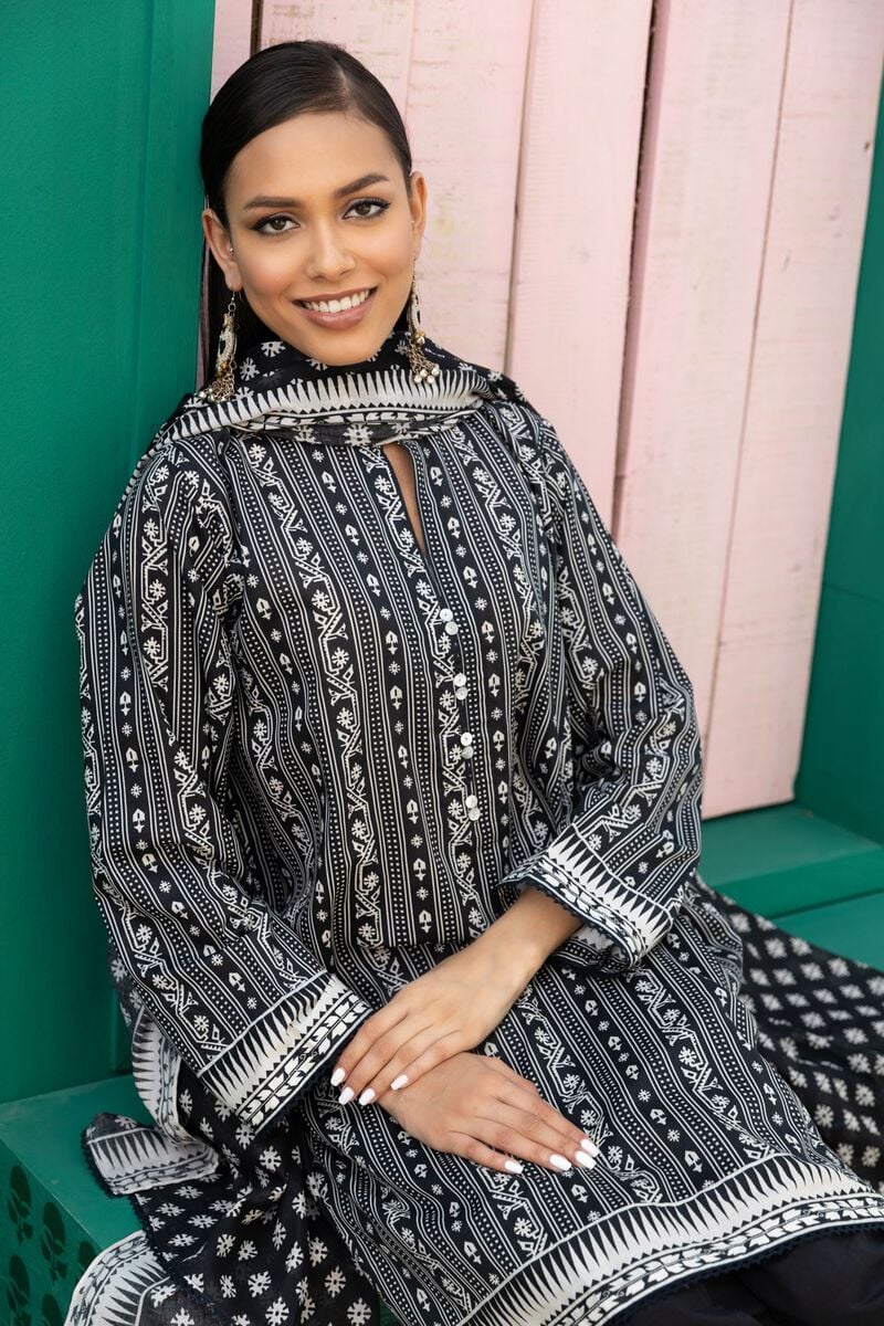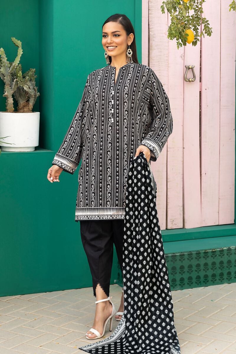 Khaadi | 3 Piece Unstitched Printed Cambric Suit | ALA231202-Black
