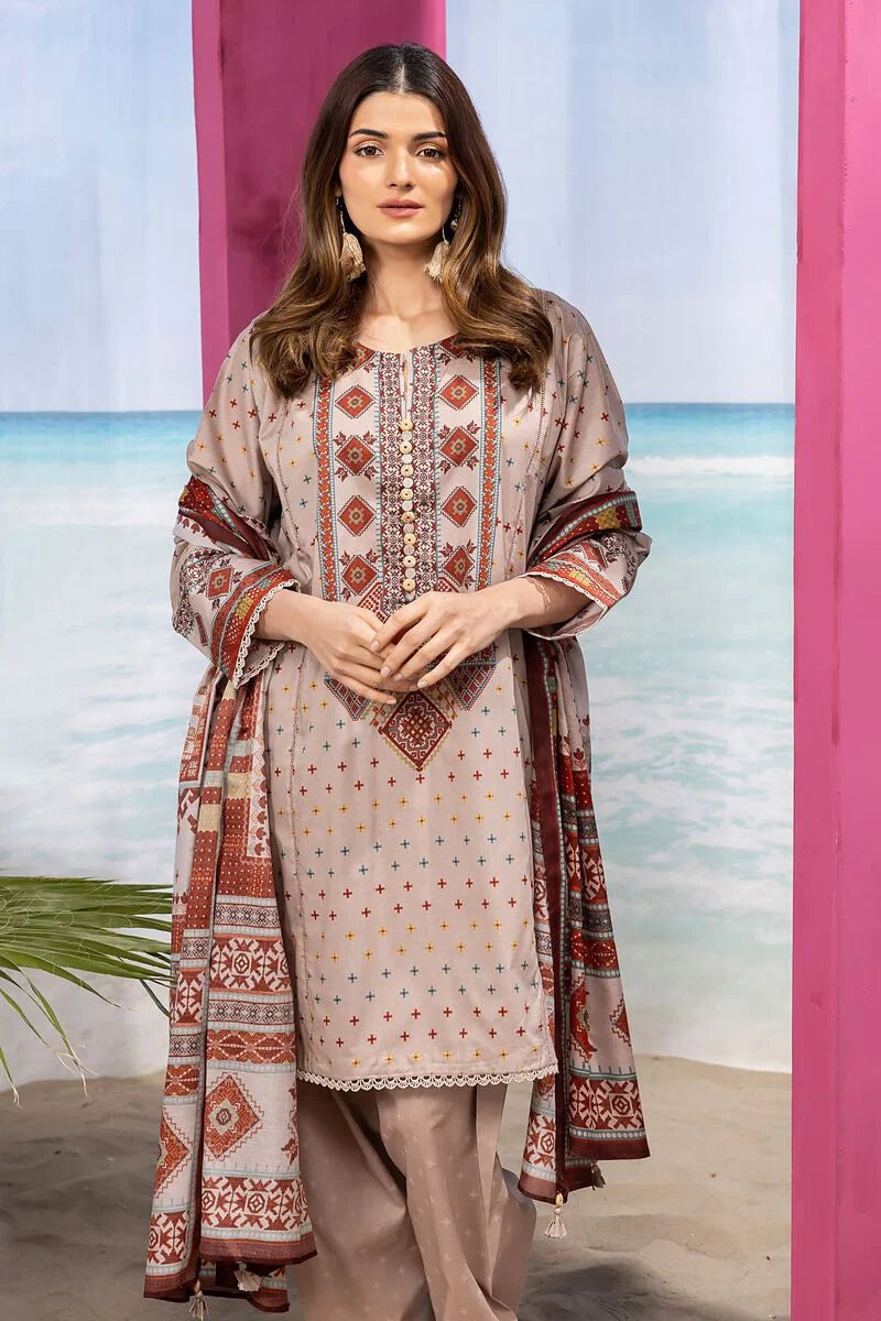 Khaadi | 3 Piece Unstitched Printed Cambric Suit | ALA240122-Beige