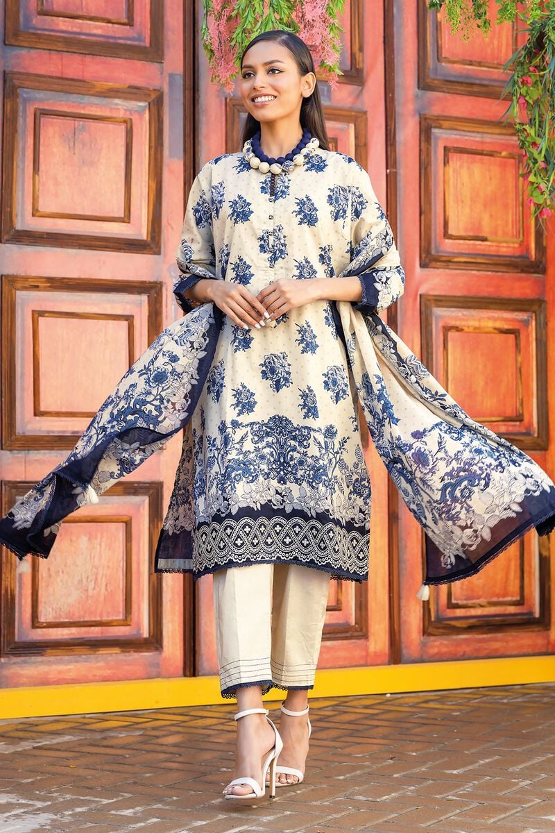 Khaadi | 3 Piece Unstitched Printed Embroidered Lawn Suit | BLA231223-Beige