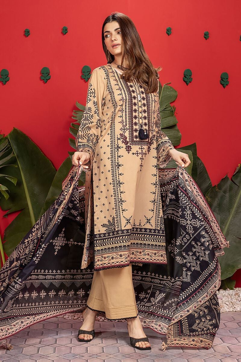 Khaadi | 3 Piece Unstitched Printed Embroidered Lawn Suit | BLA240111-Beige