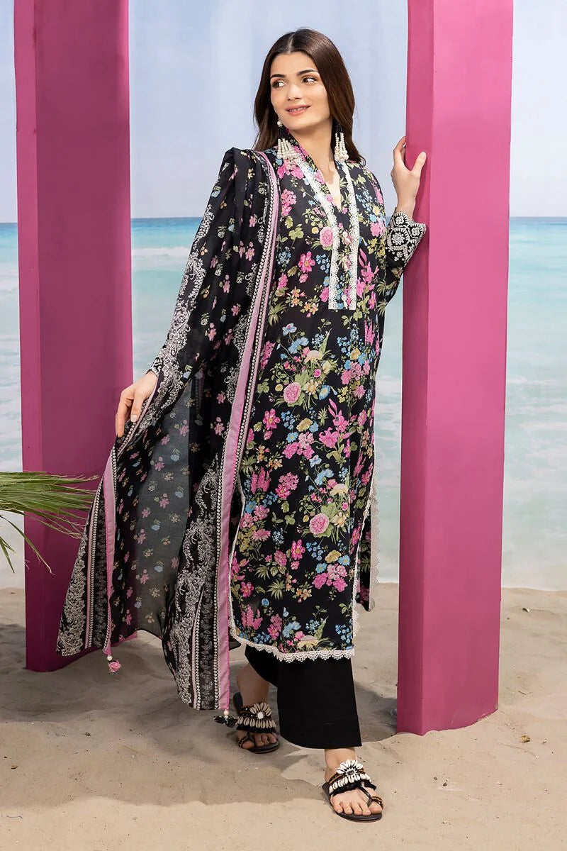 Khaadi | 3 Piece Unstitched Printed Embroidered Lawn Suit | BLA240129-Black