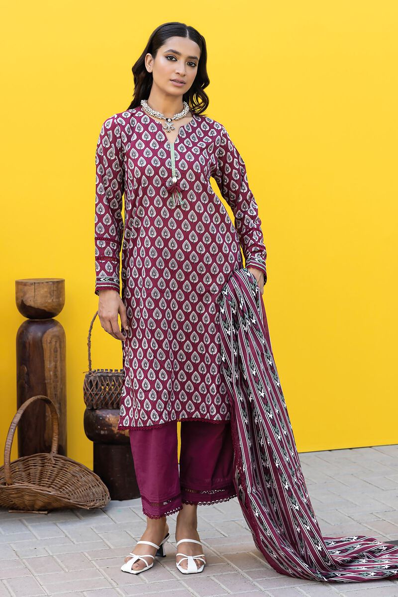 Khaadi | 3 Piece Unstitched Printed Lawn Suit | ALA231212 - Maroon