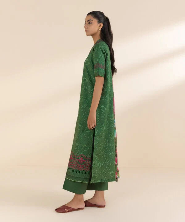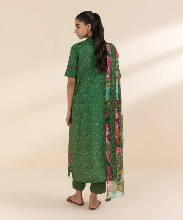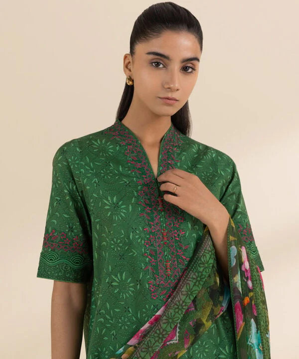 Make a style statement everyday in our embroidered green & multi-coloured, lawn shirt and viscose chiffon dupatta fabric.