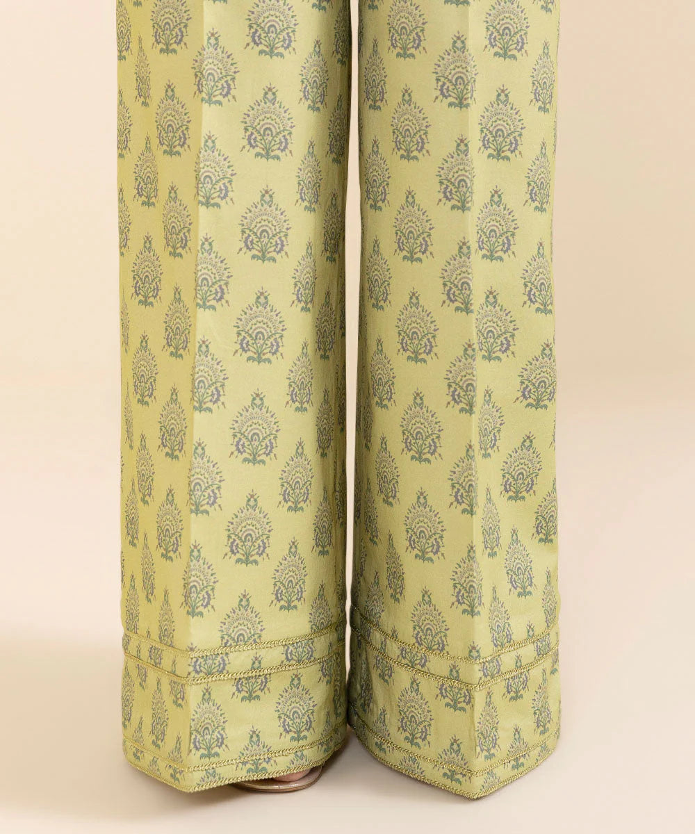 Make a timeless statement with our two-piece printed ensemble in lime yellow featuring a cotton shirt and trousers.