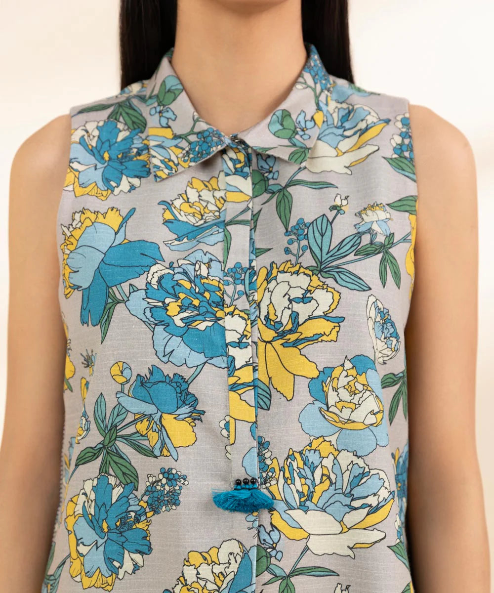 Make a statement with our multi-coloured and grey two-piece printed khaddar ensemble featuring floral prints.