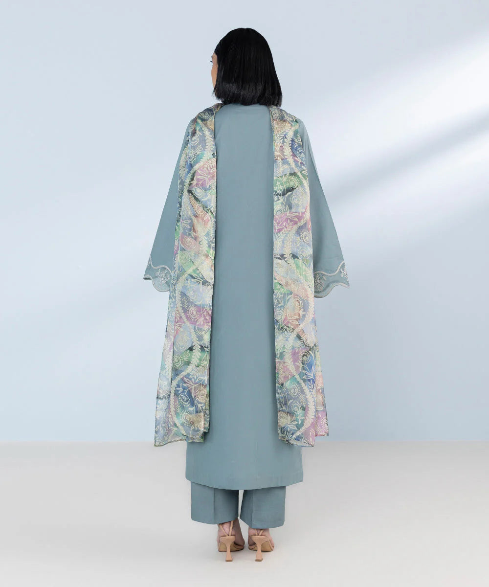 Embroidered Neckline, Hem & Sleeves Border 3PC